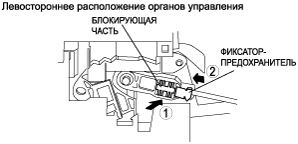 4. Установите фиксатор троса селектора АКП и предохранительный замок (со стороны селектора) в последовательности показанной на рисунке.